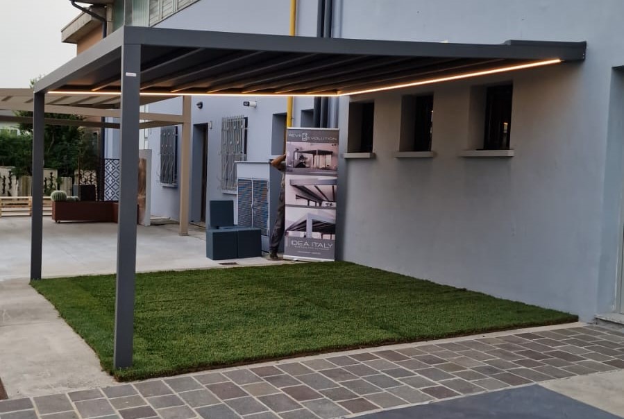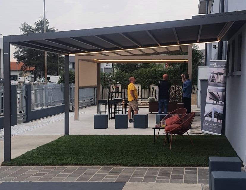 Idea Italy con due Open Day il 05 e 06 Ottobre ha presentato la nuova Pergola Rever che completa la gamma di pergotende con un prodotto più compatto ed economico della pergola Icover da cui prende spunto e che per certi versi migliora.
