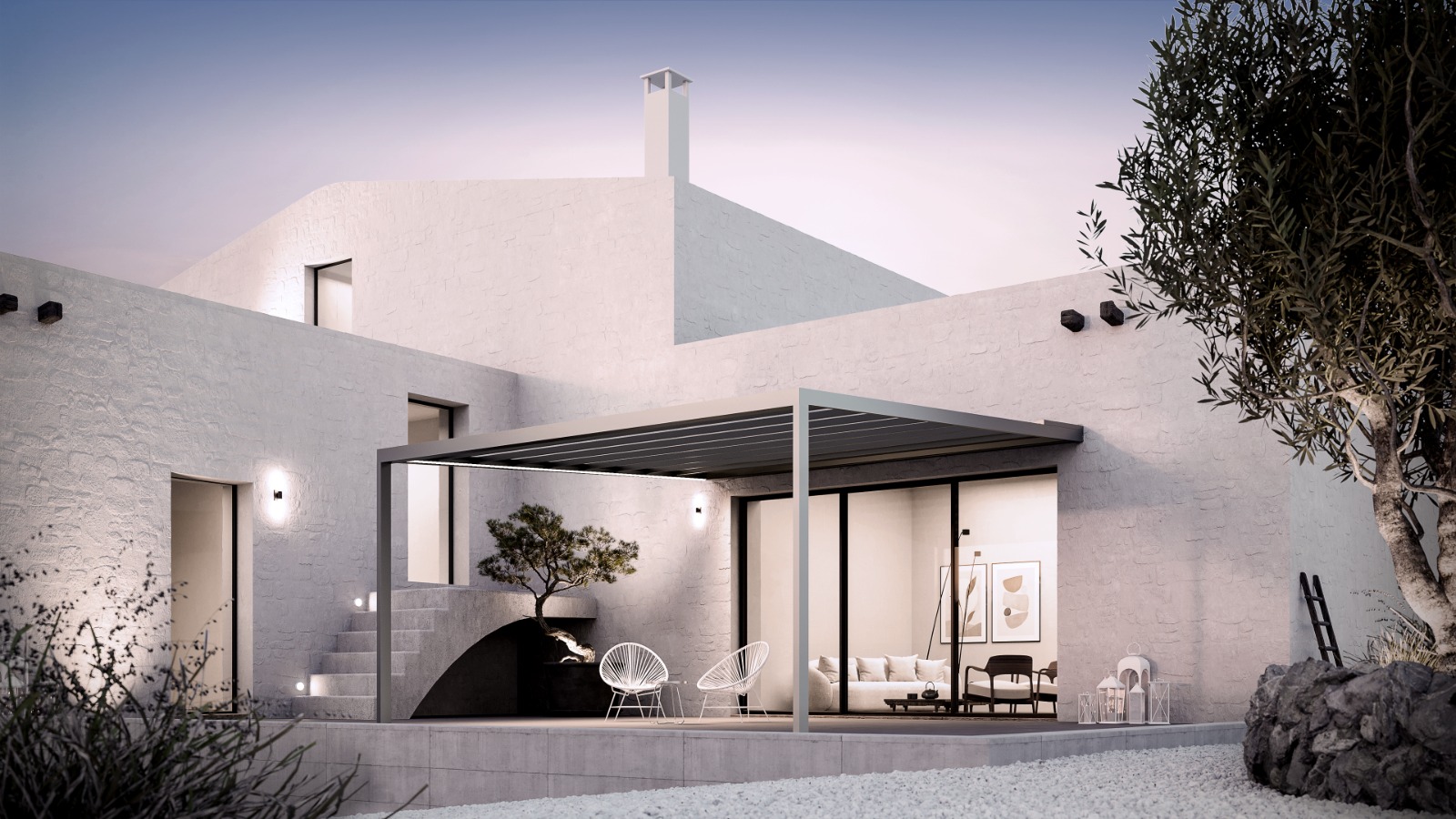 Timpani e tende perimetrali - sia ombreggianti che con effetto vetro - possono completare il prodotto.